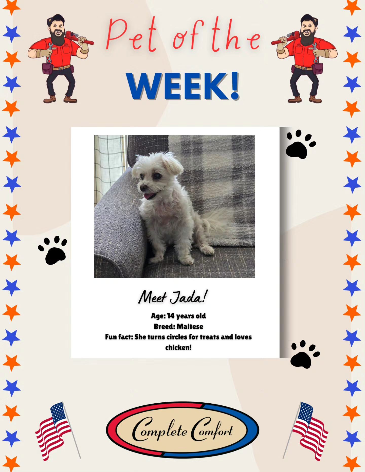 Here at Complete Comfort, we LOVE our animals! We get to meet some of the best pets ever, when we’re out helping our customers stay comfortable! If you want your pet/pets to be nominated, message us the following: